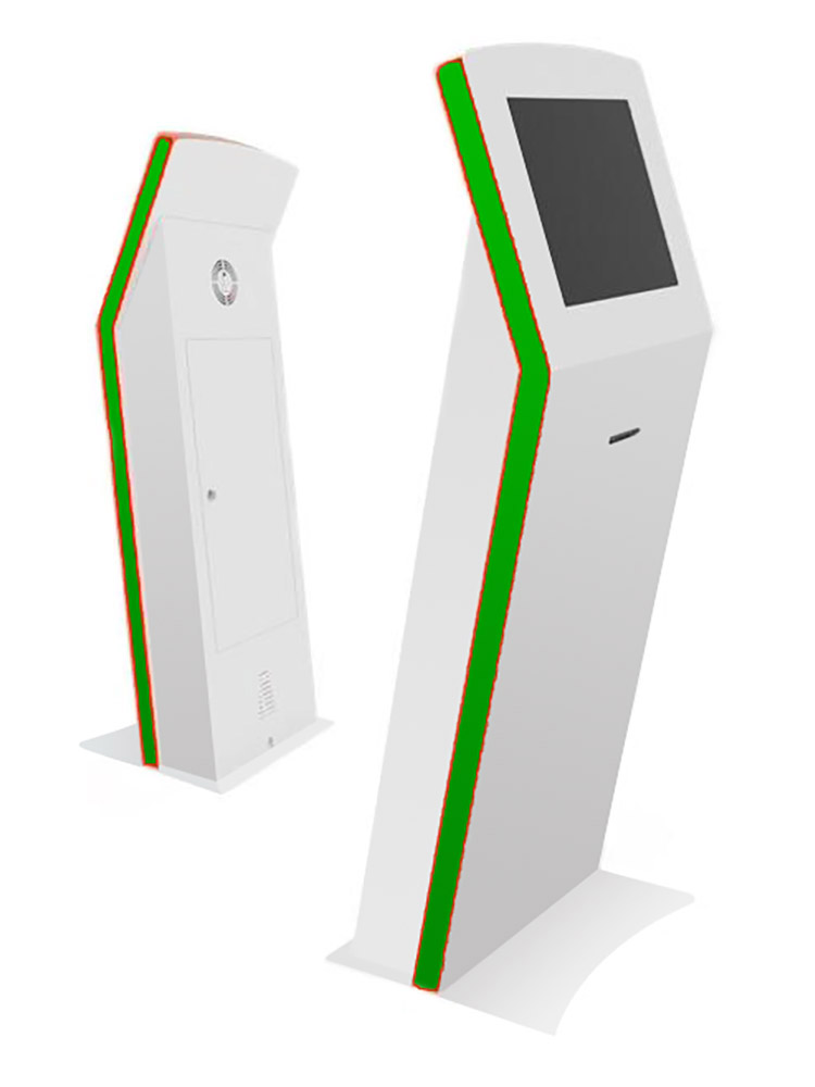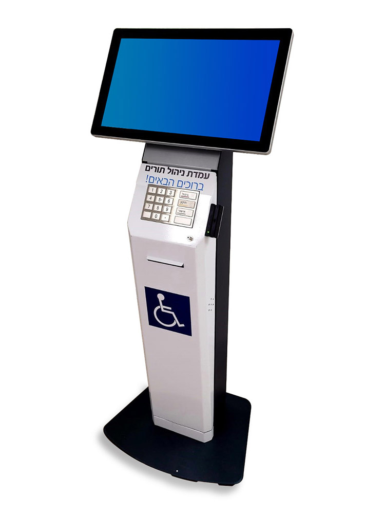 Each kiosk comes equipped with a high-quality touchscreen (available in multiple sizes), a powerful integrated computer, and an 80 mm printer.